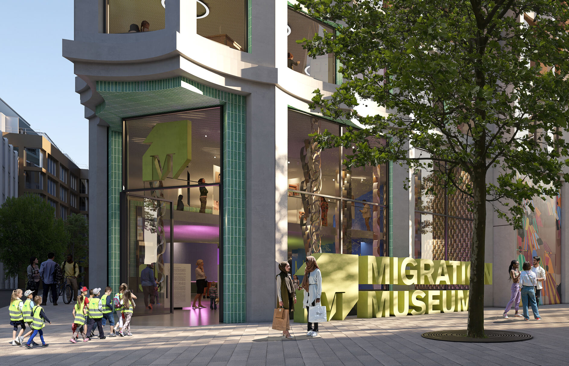 Entrant's Summary: Proactive City planners were instrumental in finding a new permanent home for the Migration Museum in Friary Court, 3,100 sqm, over three floors of exhibition, educational, art, cultural, café, and training space, with substantial public realm benefits and prominent multi-aspect frontages. The Museum celebrates migration, the lifeblood of London and the City. The Museum will be part of a 770 unit (35% affordable) student accommodation scheme addressing chronic London wide shortfall in student accommodation, supporting our young people, London’s Higher Educational offer and introducing a dynamic new demographic forging a 7 day and evening inclusive, welcoming City for all communities