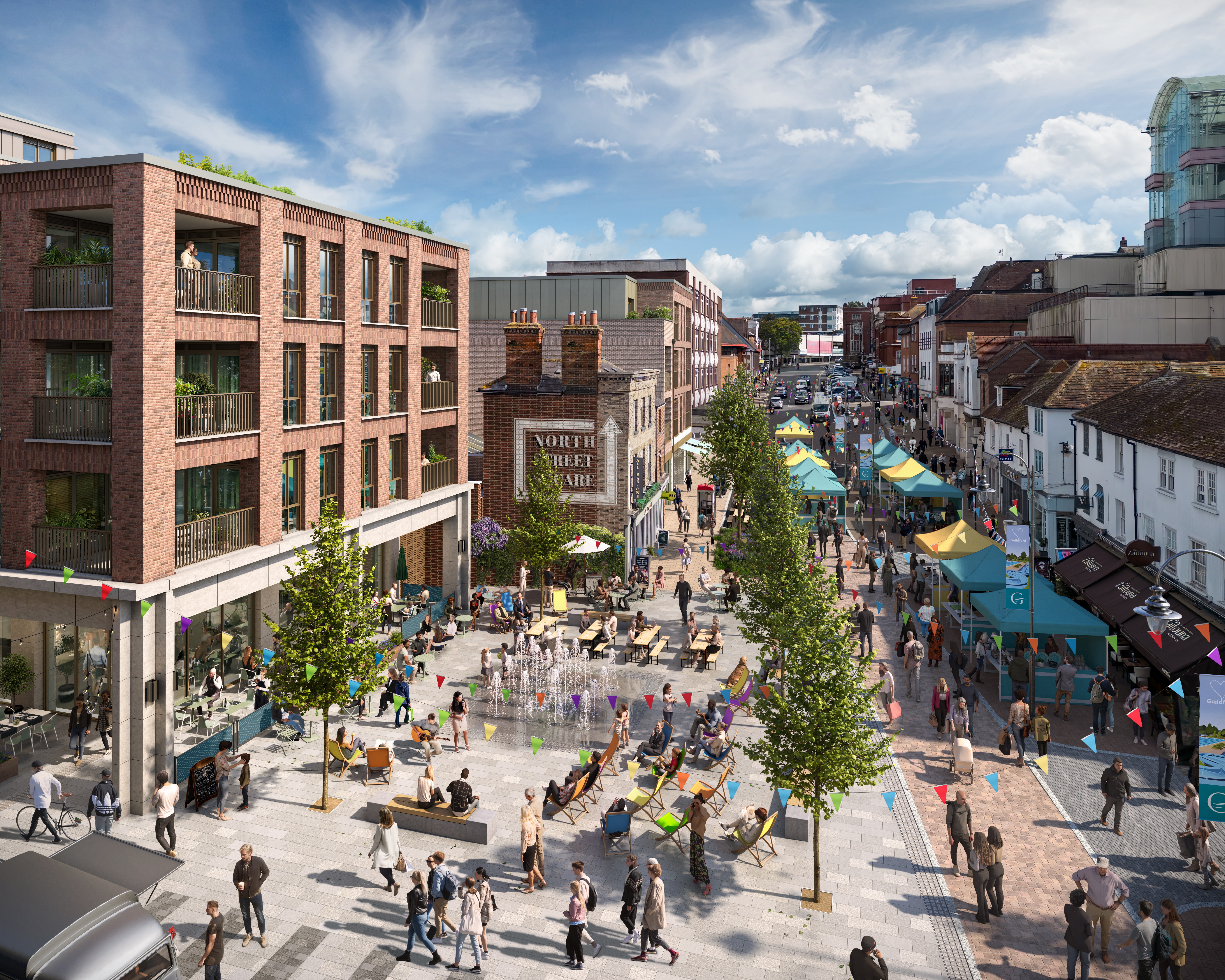 Executive summary from entrant: The North Street regeneration project in Guildford is a transformative mixed-use development revitalising a brownfield site vacant for 30 years. It will deliver 477 highly sustainable, all-electric homes, a medical centre, and significant public realm enhancements, including pedestrianization of part of ...