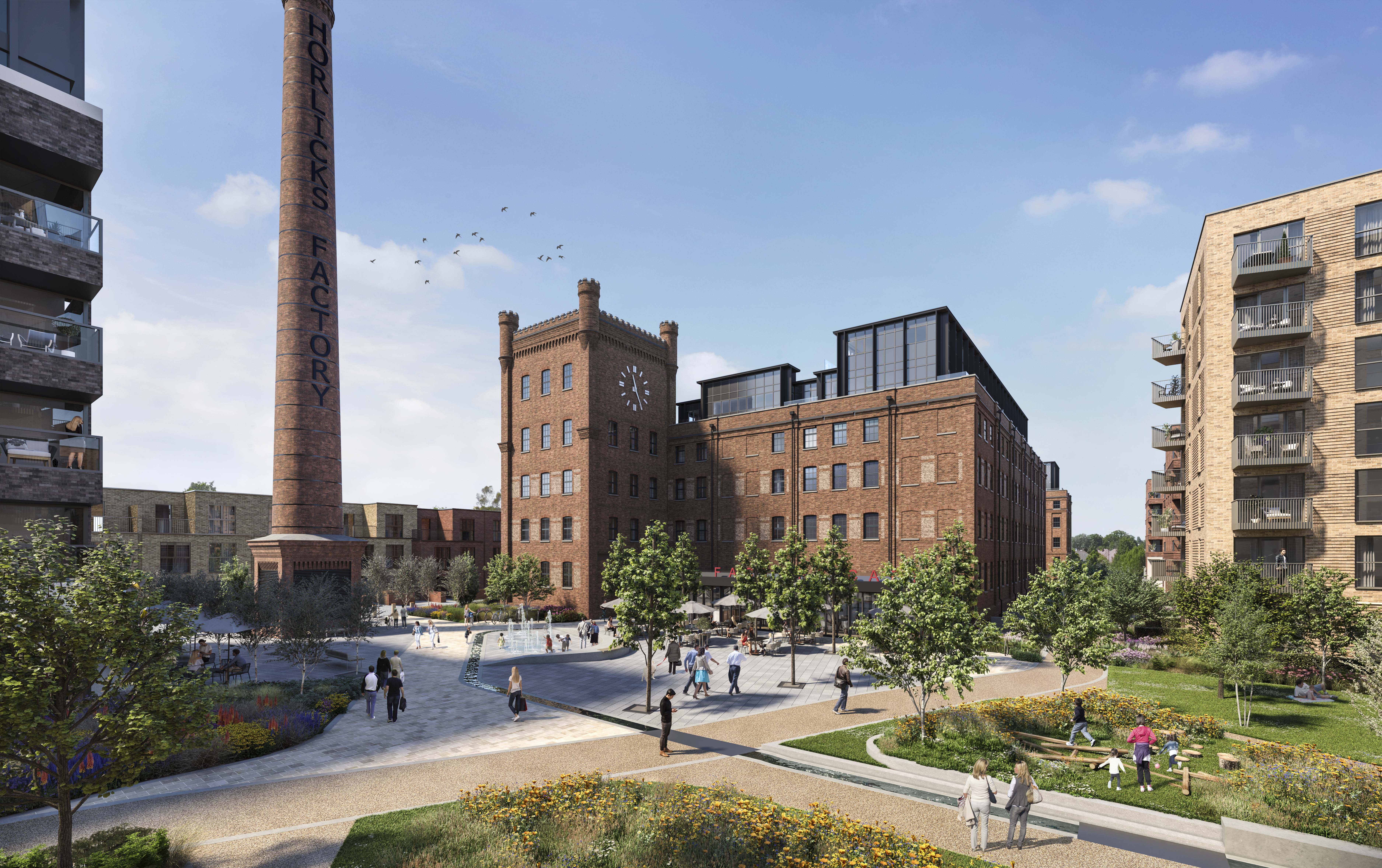 Through sensitive restoration and working collaboratively with key stakeholders we have been able to redevelop a previously underutilised brownfield site, restoring the factory and creating a unique identity for the Horlicks Quarter. The restoration of Grief and the original lettering and their inclusion within wider scheme, and the cl...